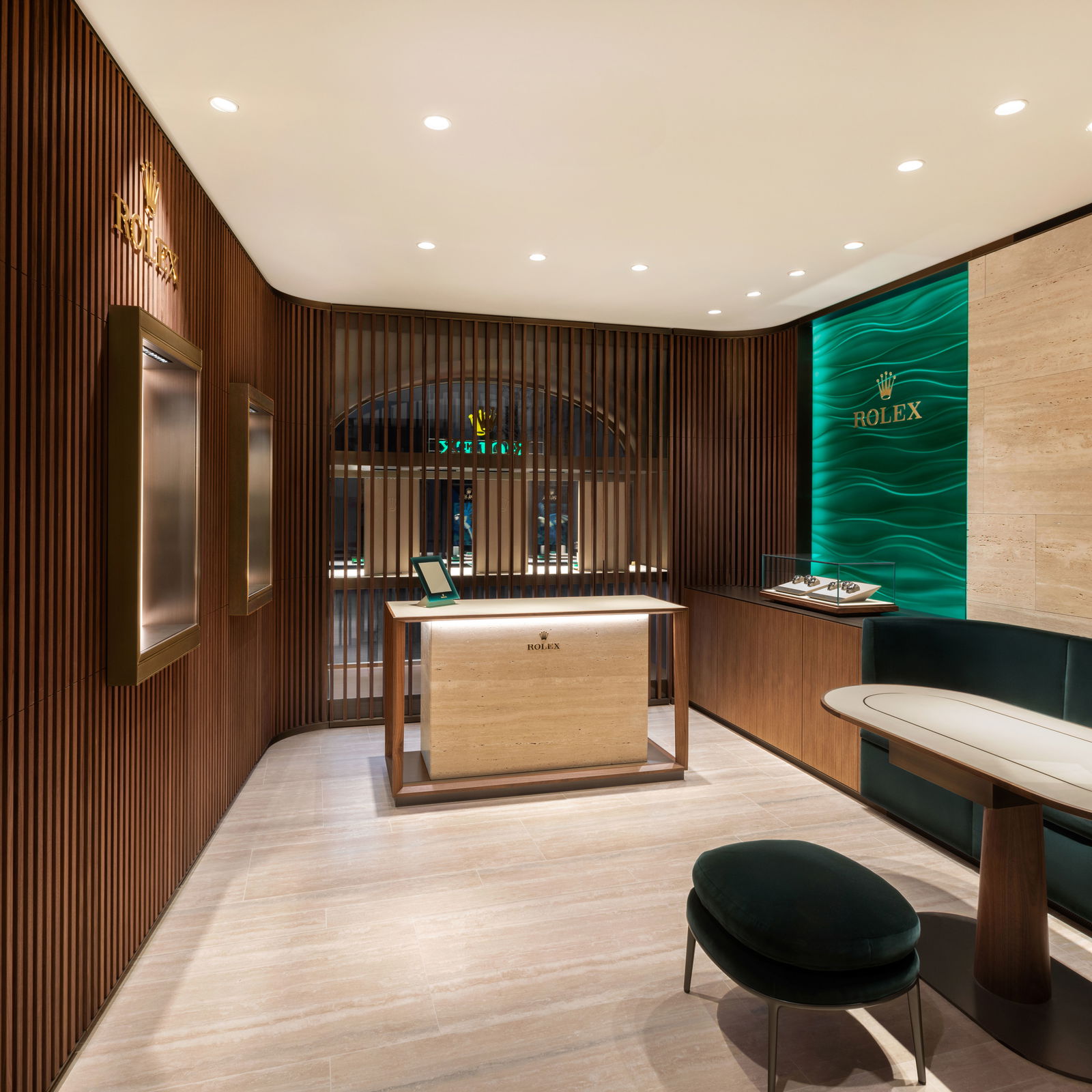 Im Zuge des aufwendigen Umbaus ist ein echtes Highlight entstanden: die neu gestaltete Rolex Lounge. Sie lädt dazu ein, die Welt der Luxusmarke auf völlig neue Weise zu erleben. Auch die Modelle von Omega, Breitling, Jaeger-LeCoultre, Tudor und -Nomos Glashütte werden stilvoll in den neu gestalteten Räumen inszeniert.